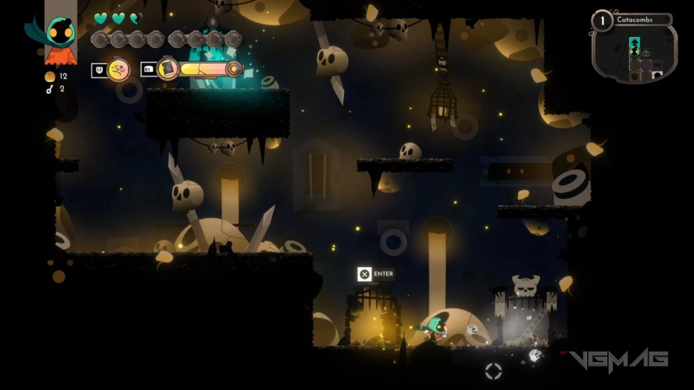 اما چیزی که شما را کمی در انجام این کار اذیت میکند، کنترل غیر روان و کُند بازی است. شخصیت Folly of the Wizards بهشدت آهسته است، نمیتواند به جز پرش کار دیگری انجام دهد و این مسئله کنترلکردن او و شلیککردن به دشمنان را بسیار سخت کرده است. ما با کنترلر PS5 نتوانستیم تجربه خیلی خوبی از گیمپلی بازی داشته باشیم. بهعنوان یک بازی Action Roguelike، سازندگان بازی نتوانستهاند مکانیک روانی از آب دربیاورند.