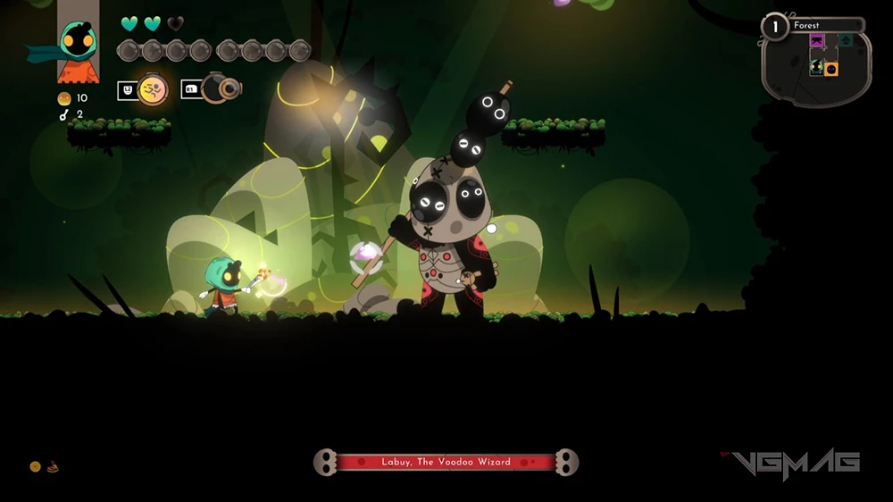 بیایید اول نیمه پُر لیوان را ببینیم: طراحی و انیمیشنهای Folly of the Wizards بهشدت زیبا و خارقالعاده هستند. از همان منو اصلی بازی گرفته تا انیمیشن نابودشدن دشمنان و باسفایتهای بازی، شخصیتها، محیطهای متنوع بازی و محیط کاربری بازی با دقت، زیبا و با وسواس طراحی شدهاند.