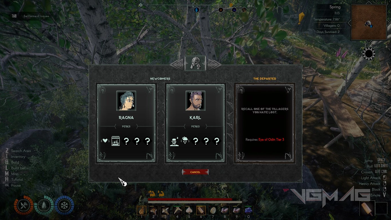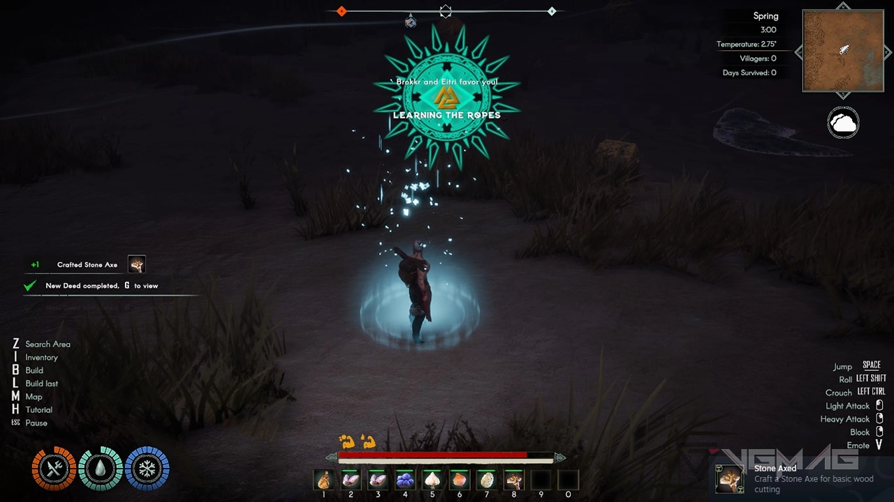 بازی از آنجا شروع میشود که شما چشم در ساحل یک جزیره کوچک باز میکنید و یک موجود افسانهای غولآسا به شما وظیفهای میدهد: خدایان به شما فرصت دوبارهای دادهاند: چشم اُدین را بَنا کن و قبیله خود را بساز. بعد از آن، بازی به شما کمک میکند تا کمی منابع جمع کنید تا از شب و خطرهای آن در امان بمانید.