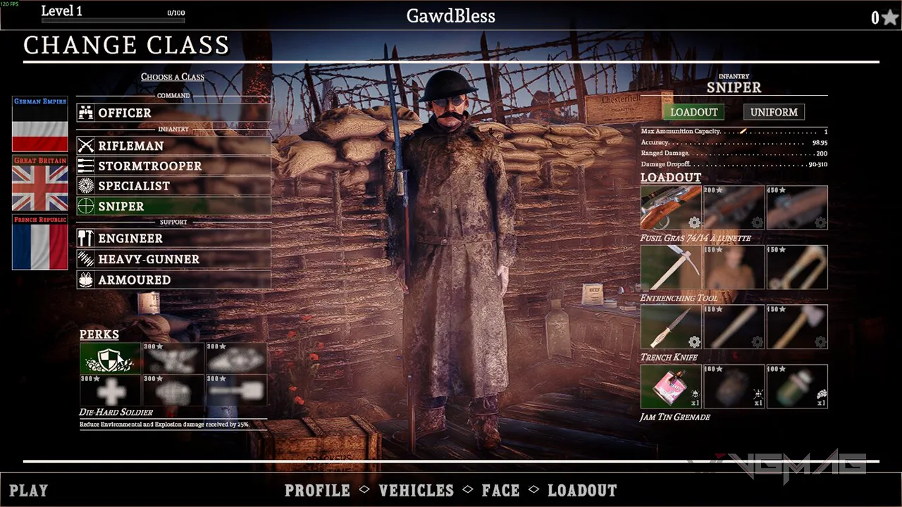 سازندگان Over the Top WWI همچنین ویژگیهای خوبی برای شخصیسازی و پیشرفت در بازی ساختهاند. مطمئنیم که سازندگان بازی نمیخواستند در حد Call of Duty به بازی اسکین و Attachment اضافه کنند، اما برای چندین ساعت تفریح دیوانهدار و لذتبخش میتوانید این بازی را تجربه کنید. چون زمان کُشتن بقیه بازیکنان و باتهای بازی کم است، شما خیلی استرس زده نمیشوید و بازی را خیلی جدی نخواهید گرفت. پیشرفت در بازی آسان است و بعد از چند راند میتوانید لولهای بالاتری را باز کنید و اسلحههای بهتر یا متفاوت را داشته باشید.